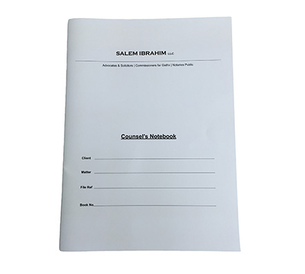 Notebook can be customised with different types of materials for cover and the inserts. Number of sheets required for the insert can be customised according to your needs, 50 or 100 sheets are most commonly done.